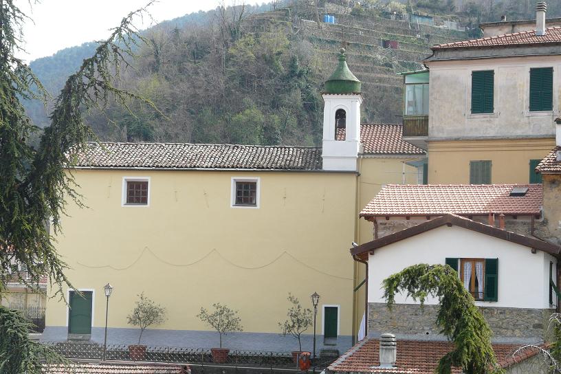 Il suo aspetto esteriore è quello tipico delle casacce del seicento, austero, rettangolare, con un piccolo campanile, colorato di verde, così come la “porta piccola” e quella del campanile. Nel suo interno, l’aula è sormontata da una volta a botte lunettata, ornata da stupendi stucchi che convergono in un ovale rappresentante la Santa Patrona. Si presenta come un bellissimo esempio di barocchetto ligure, ricoperto di stucchi policromi.